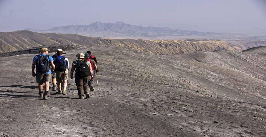 In the morning trek into the Rift Valley, base of Ol Doinyo Lengai mountain. Hike into the Rift Valley: steep cliffs on one side, Lake Natron in front and the impressive stratovolcano of Lengai on the other side. Down in the valley, you will relax at a comfortable campsite near Lake Natron.